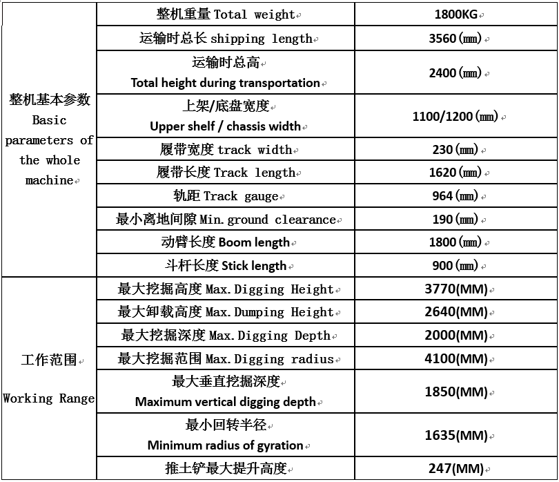 18挖掘機參數